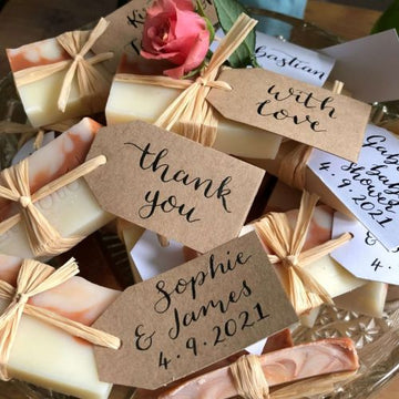 Wedding Favours. Looking for something unique for that special occasion? Each handmade soap is individually cut, wrapped and hand written in calligraphy with a personalised message of your choice. A name, date or just a message of love or gratitude.